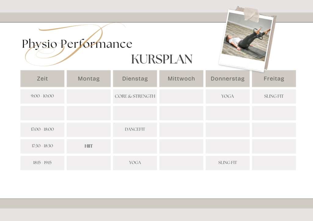 Physio Performance Physiotherapie – Training – ERnährung Termin Vereinbaren Physiotherapie Fitnessklassen Personal Training Heilpraktiker für Physiotherapie UNSERE RÄUMLICHKEITEN
